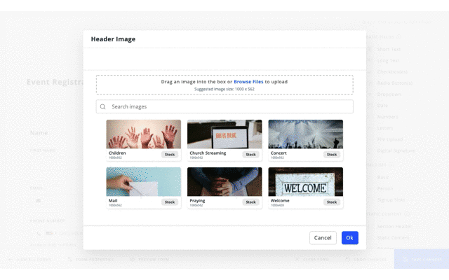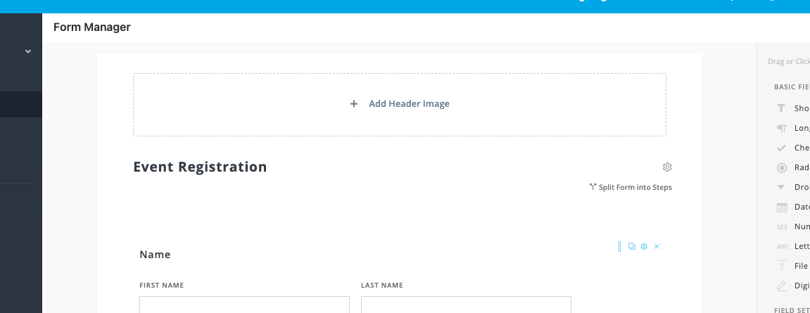 - You'll notice a block at the top of your new form that says + Add Header Image.