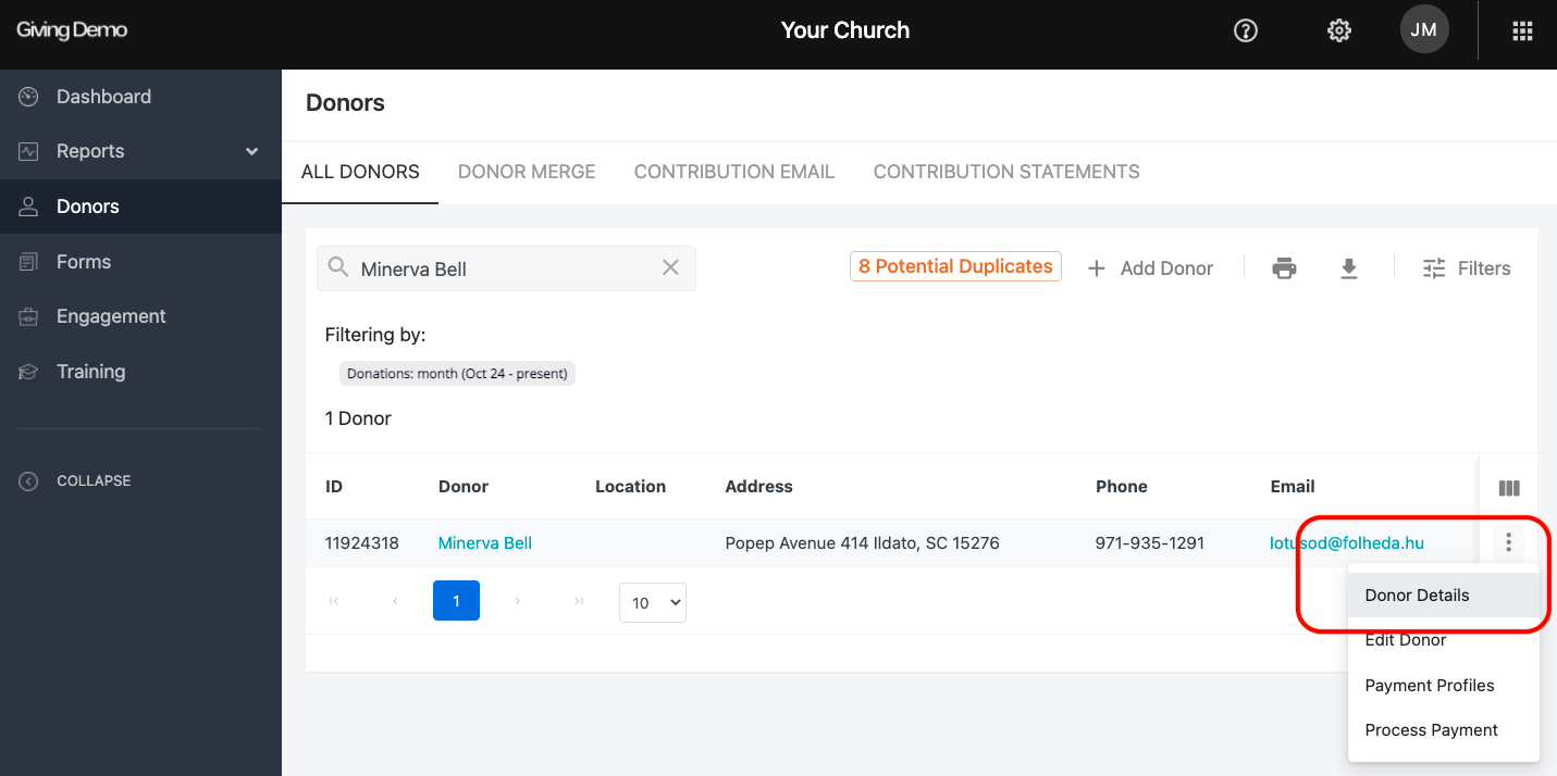 4. Click the three-dot ellipses to the far right of that line to open the Donor Details.