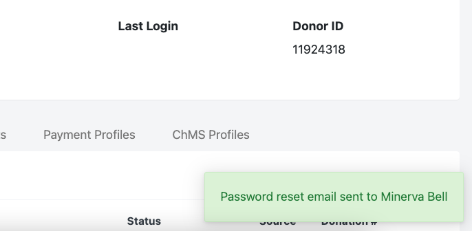 • Confirmation: A password reset email will be sent to the donor's email address.