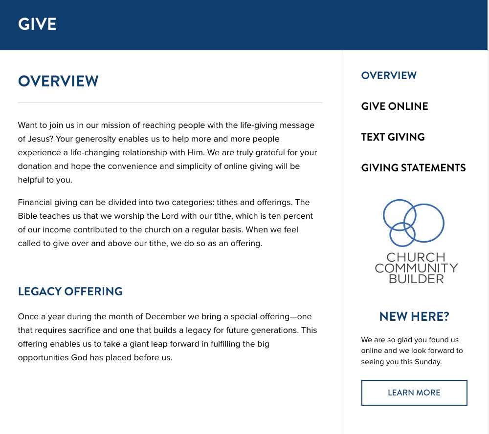 Your organization’s giving page should be a generosity magnet, serving as an immediate action point for givers to support your church's vision. A well-designed website reflects the importance of generosity and inspires action.