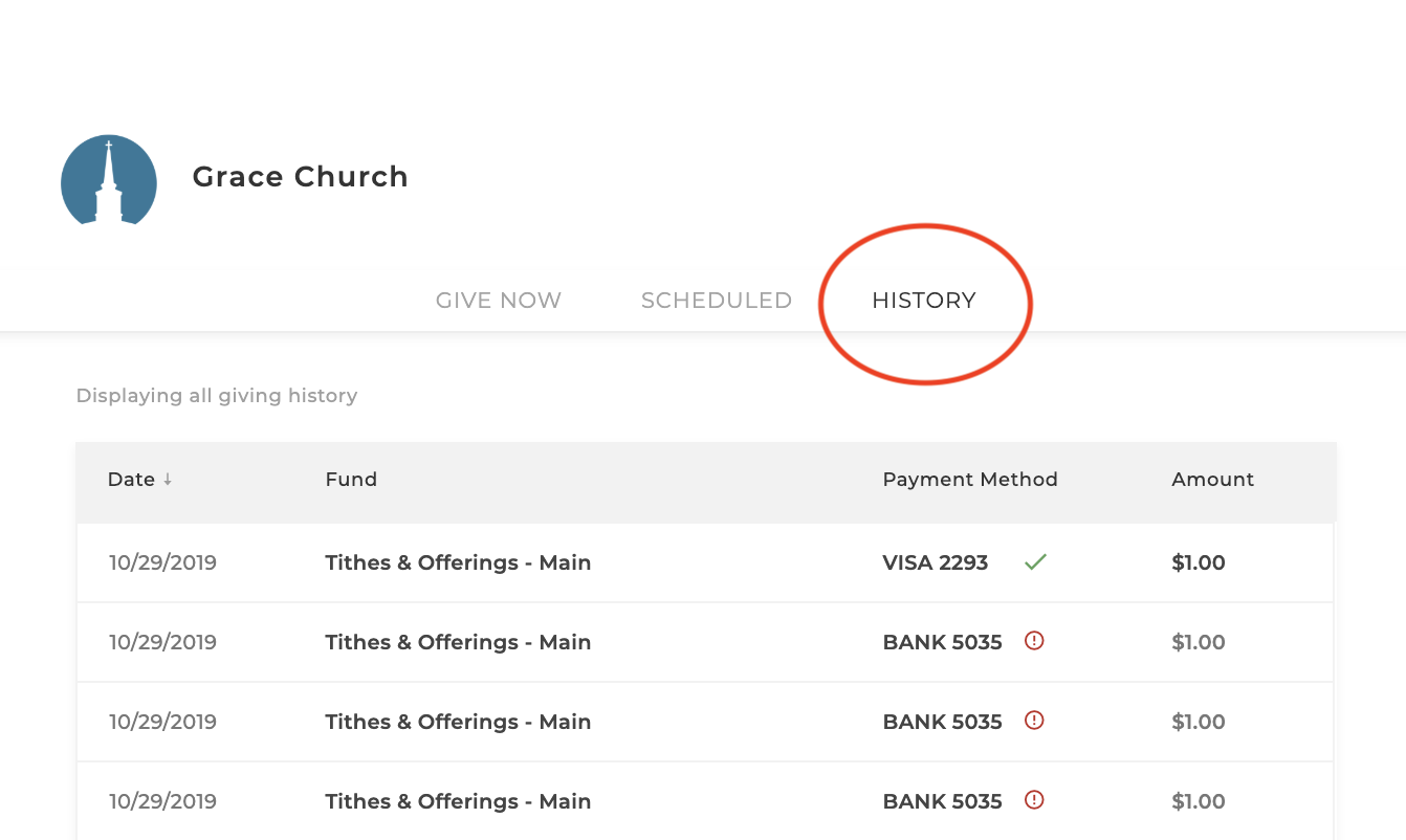 View or cancel scheduled recurring gifts (under the Scheduled tab)