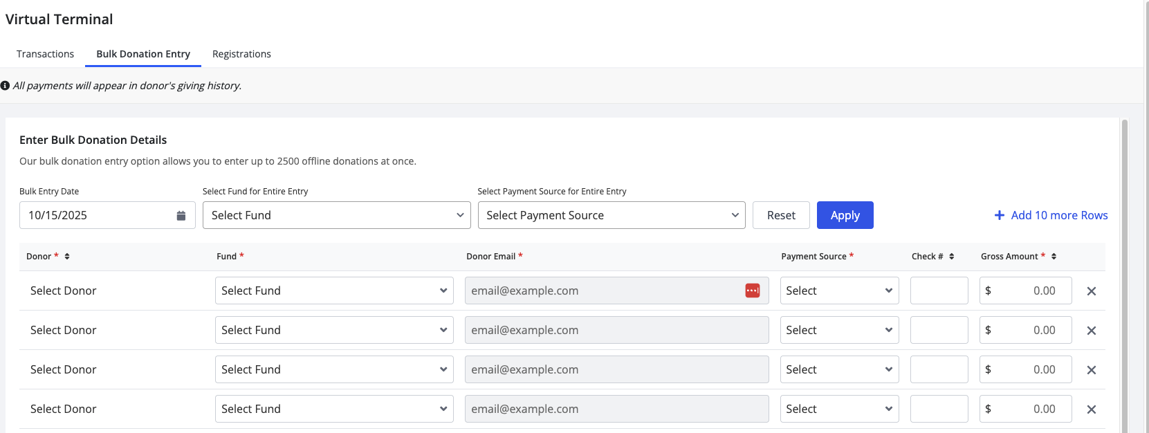 This helps keep reporting consistent and ensures all giving is tracked in one place.