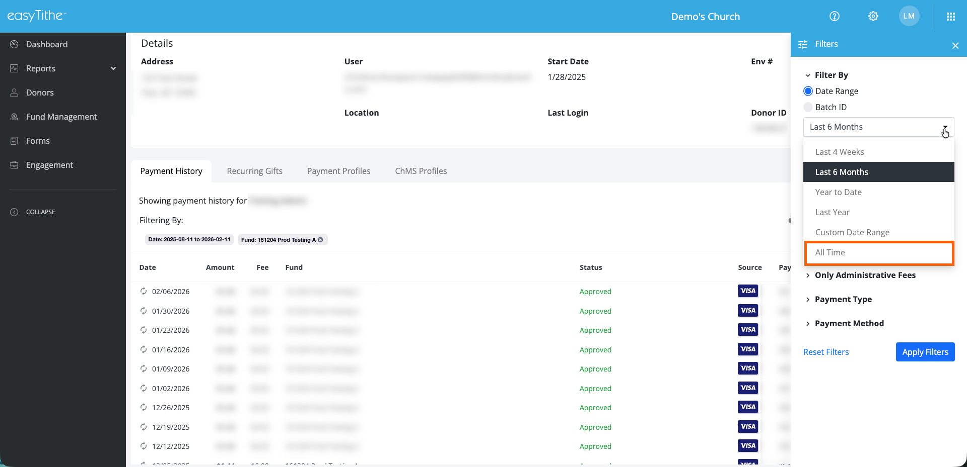 This reduces the need to repeatedly adjust filters and makes reviewing donor activity faster.