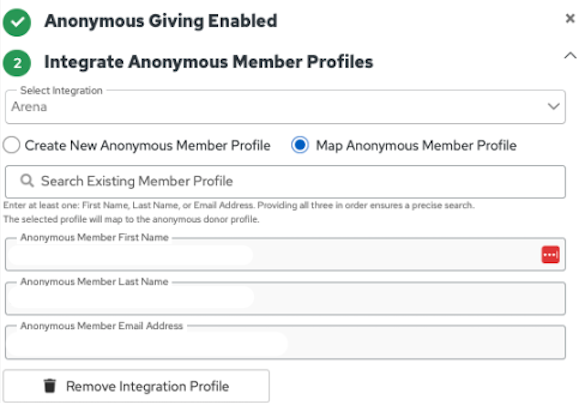 - Create a New Anonymous Member Profile (e.g., “Online Anonymous Donor”), or