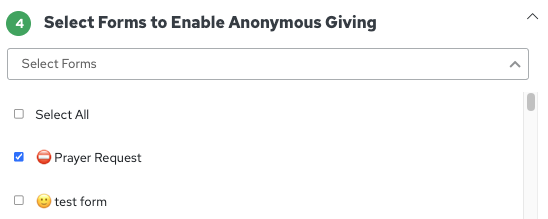 💡 Only forms categorized as “Donation Forms” will support anonymous giving.