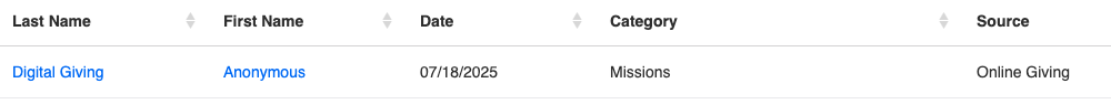 - These gifts will display the Donor Name as “Anonymous Donor”.