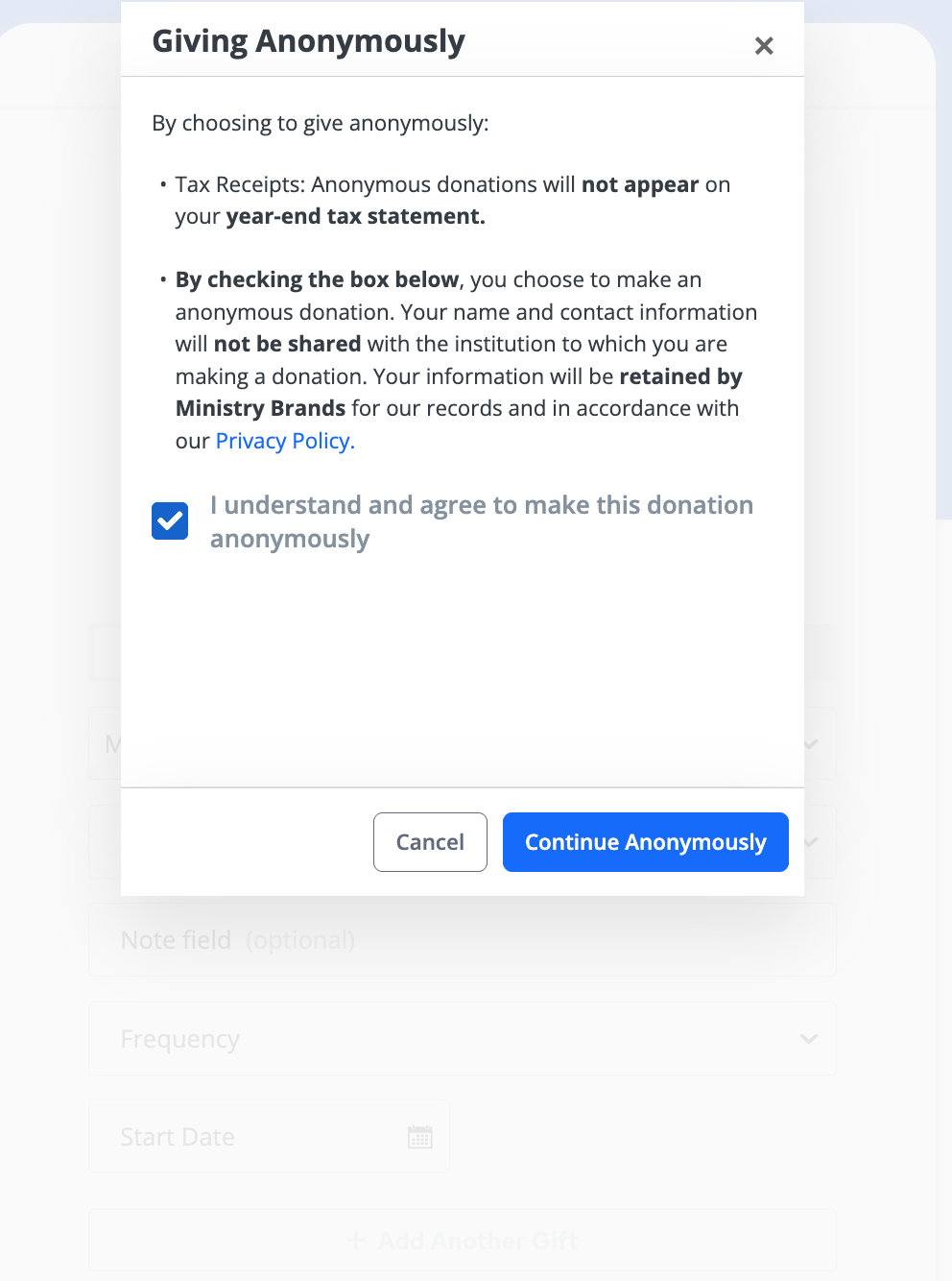 Agree to Anonymous Giving Terms